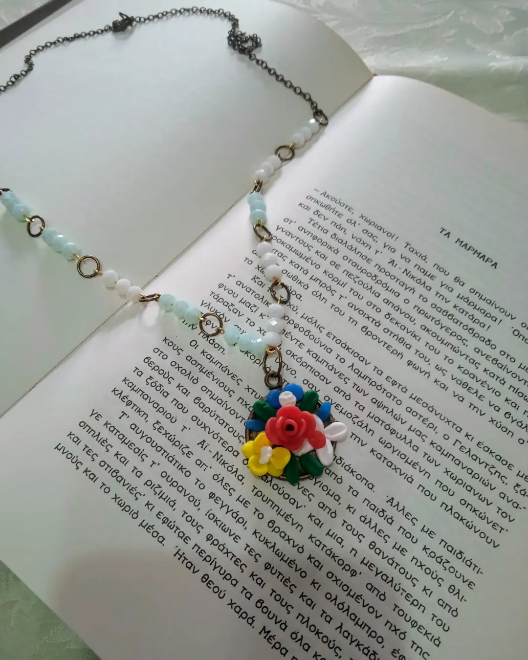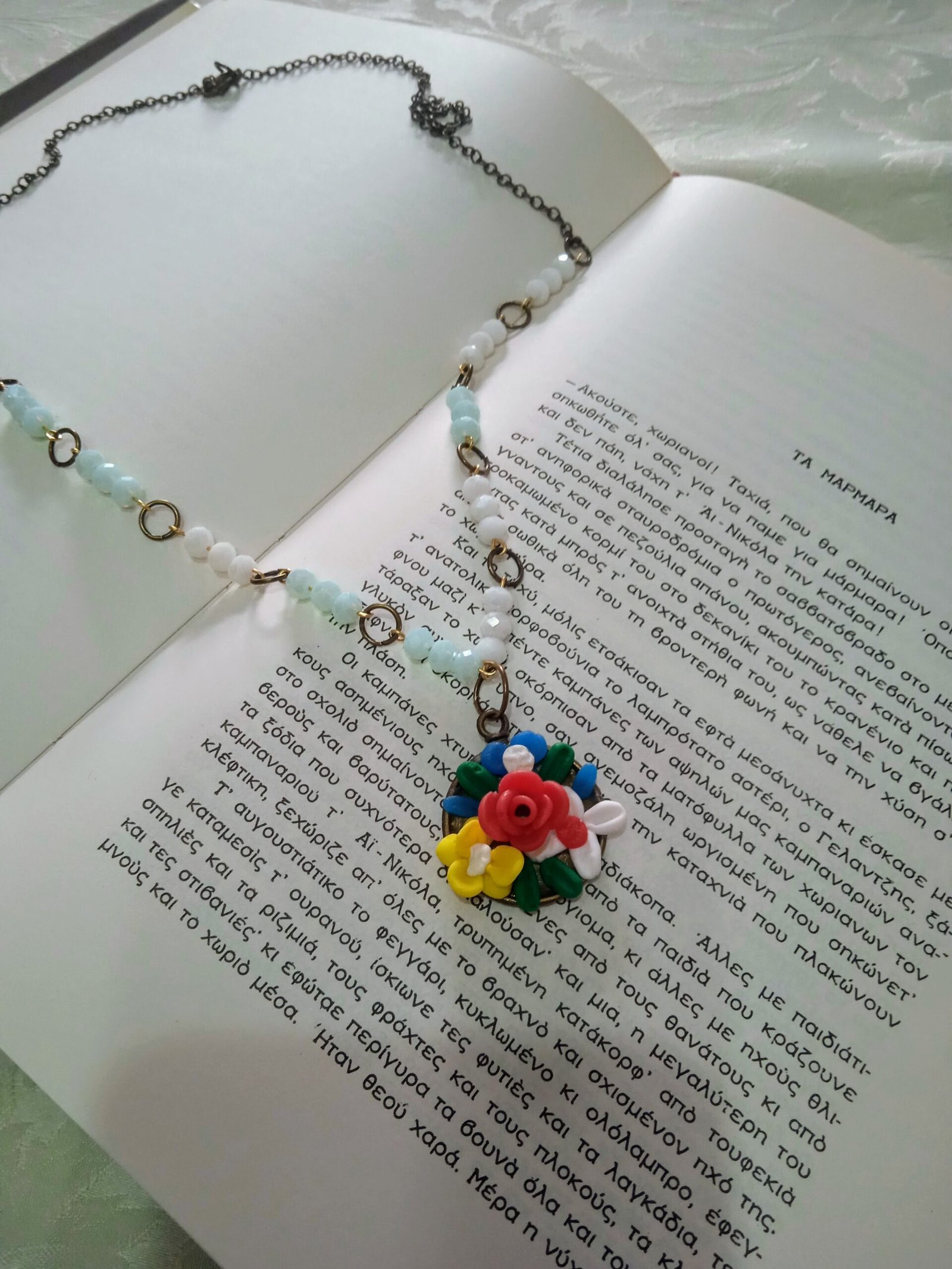 Εμπνευσμένο από την κλασική τηλεοπτική σειρά Το Μικρό Σπίτι στο Λιβάδι, αυτό το χειροποίητο κολιέ φέρνει την αγροτική ζωή και τα όμορφα λιβάδια της Άγριας Δύσης στο στυλ σας. Κατασκευασμένο με λεπτομέρεια, μικρά άγρια λουλούδια συνδυάζονται με λευκές και γαλάζιες χάντρες, αποπνέοντας τη γαλήνη του ουρανού και τη ρομαντική ατμόσφαιρα της εποχής. Ιδανικό για όσες αγαπούν τις ρομαντικές ιστορίες μιας άλλης εποχής και θέλουν να προσθέσουν μια νοσταλγική πινελιά στο ντύσιμό τους.