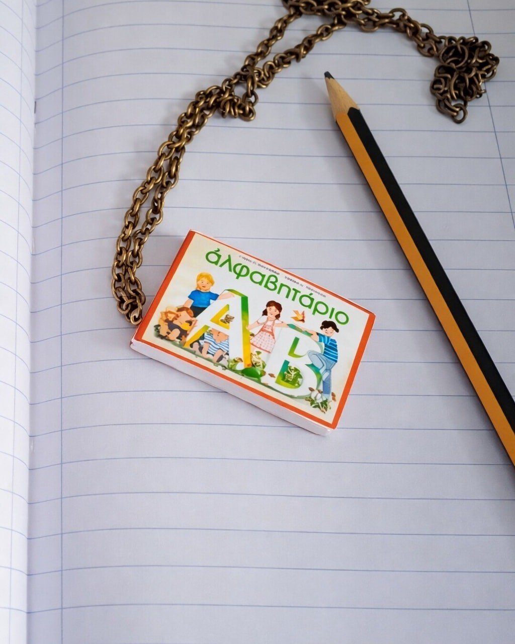 Ένα μοναδικό κολιέ που συνδυάζει τη μόδα με τη νοσταλγία! Το μενταγιόν σε σχέδιο αλφαβηταρίου θυμίζει τα πρώτα σχολικά χρόνια και ξεχωρίζει για τον ιδιαίτερο, vintage χαρακτήρα του.