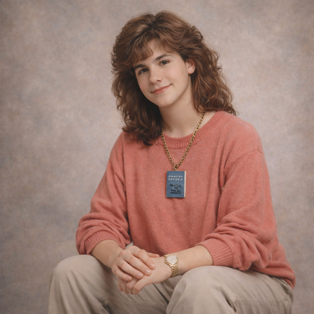 Ένα μοναδικό, χειροποίητο κολιέ σε σχήμα μικροσκοπικού βιβλίου με εξώφυλλο εμπνευσμένο από την κλασική έκδοση της Ομήρου Οδύσσειας. Ένα κόσμημα με έντονο συμβολισμό, ιδανικό για λάτρεις της λογοτεχνίας, των κλασικών γραμμάτων και του ιδιαίτερου στυλ.