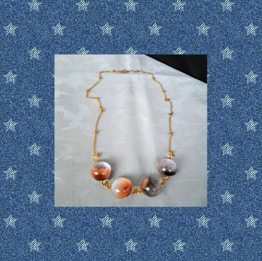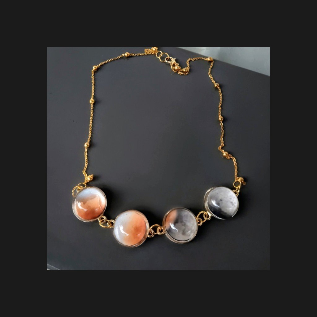Ένα κόσμημα που μας ταξιδέυει στον όμορφο κόσμο του σύμπαντος και του γαλαξία φτιαγμένο 100% στο χέρι με υγρό γυαλί